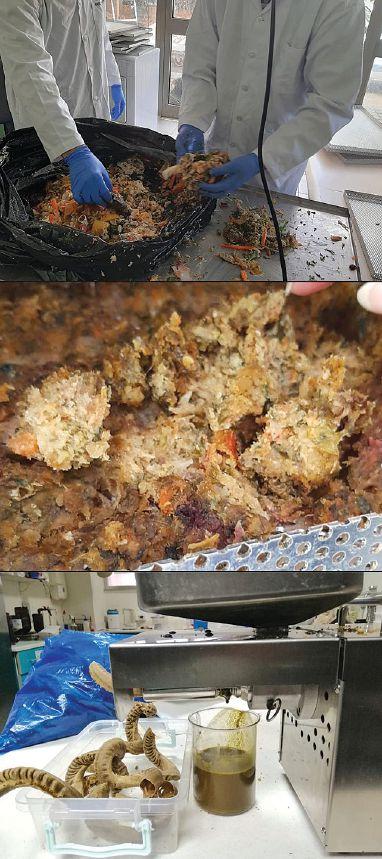 We collected plate leftovers from a local restaurant, hand-sorted the waste prior to drying and then ground it into powder. We then extracted the oil from the food waste powder using a grain oil press, resulting in a lipid content of six per cent. The obtained waste powder was then used in a screening trial to evaluate whether the microorganisms can improve the protein content of the food waste and increase its omega-3 levels. All microorganisms were cultured in the laboratory and transferred into a liquid suspension prior to being spread on the food waste. Ten days later, the bioprocessed food waste was analyzed for protein and fatty acid content.