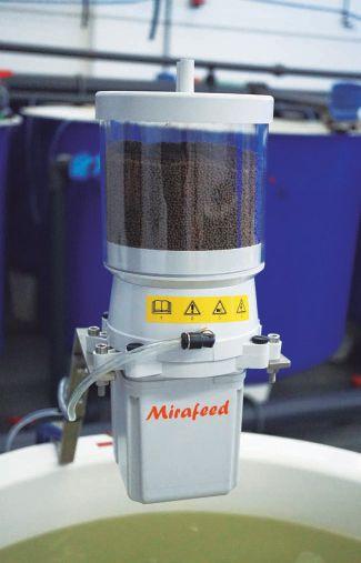 Another advantage of the Mirafeed, notes the company, is its capacity to dispense smallsized pellets. This means that experiments with early larval stages of various aquaculture species can be set up. In the case of sea bream, 12 dph feeders mean that small feed sizes of 100 to 150 microns can be used.