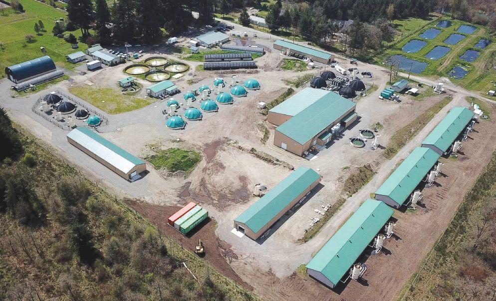 Aerial view of Riverence Hatchery. Parent company Spring Salmon bought the Washington-based Aquaseed hatchery in 2014. They renamed it Riverence, and are just completing a major renovation that will see investments total in the millions. Key to the facility are four 40’x140 hatch houses, with concrete floors and stainless steel tanks.