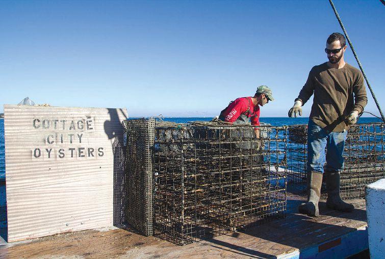 Harvesting at Mook Sea Farm. A more pressing concern for owner Bill Mook are the harmful algal blooms that have closed fisheries that typically don’t see closures.