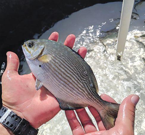 Ocean Era plans to expand its R&D to other marine finfish, such as this 'nenue' (Kyphosus vaigiensis), cultured at the firm's hatchery at NELHA in Kona, Hawaii. (Credit: Ocean Era, LLC)