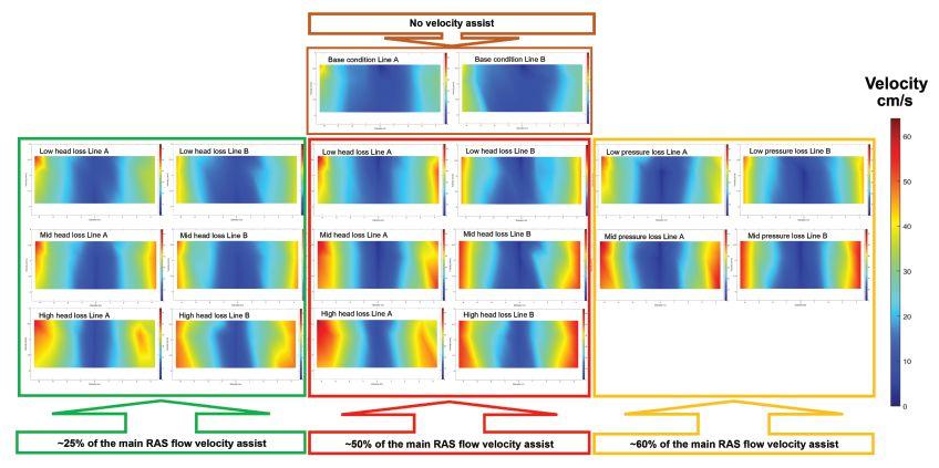 FIGURE 2. Water velocity intensity plots for all conditions evaluated.