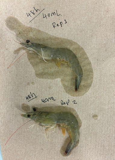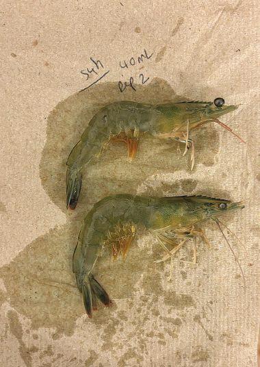 Pacific white shrimp infected with Vibrio parahaemolyticus. Shrimp were weak and lethargic before dying in the culture aquaria.