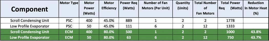 “The more efficient ECMs add less heat to a refrigerated space. The reduction in heat load results in reduced equipment runtime.”
