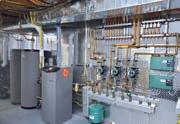• Six water source-heat pumps: There are four on basement level and two on an upper level atrium that will be used to condition these spaces.