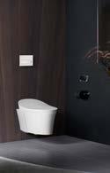The Veil Intelligent toilet from Kohler now comes in a wallmounted model. Toilet options include a heated seat with adjustable temperature, stainless-steel cleansing wand, automatic deodorization system, warm water front and rear wash modes, warm air drying system with adjustable settings and an LED nightlight. The toilet has concealed hardware and uses dual-flush technology. It has an integrated selfcleaning function that uses a UV light and electrolyzed water system to sanitize the wand’s surfaces. http://ca.kohler.com
