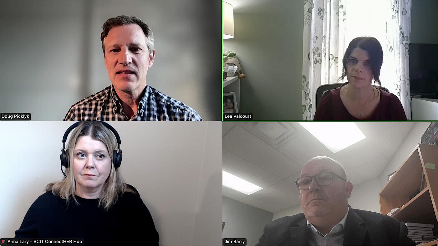 Clockwise from top left: Doug Picklyk, HPAC (moderator); Lea Valcourt, Support Ontario Youth; Jim Barry, PCL; and Anna Lary, BCIT.