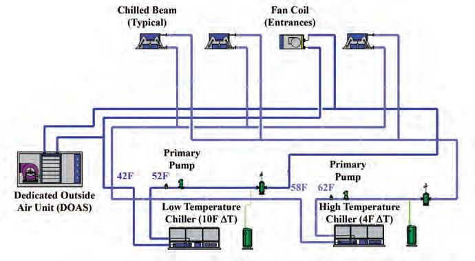 Combining a dedicated outdoor air system with active chilled beams is a modern hydronics solution for wellconditioned spaces in buildings.