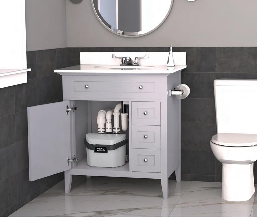 The ProVore® grinder from Liberty Pumps is designed for use in applications where addition of a bathroom or other fixtures below sewer lines requires pumping. Traditionally, solids-handling sewage pumps in the 4/10 hp. to 1/2 hp range, have been used for these applications. The solids-handling sewage pump design passes waste and solids through the pump in full-form without shredding or grinding. With lower pumping heads typically only being 8 to 10 feet (the height of a residential basement), this technology, for years, has provided a reliable cost-effective means to add a bathroom or other fixtures below gravity sewer lines; however, while providing an effective solution, the solidshandling pumps are susceptible to jamming on unwanted debris – such as feminine products, rags or other difficult solids that may get flushed into the system. This is where the ProVore® comes in. It features Liberty’s patented V-Slice® cutter technology utilized in its popular Omnivore® series of 2 hp. grinder pumps. This proven cutter design easily shreds solidssuch as feminine products, rags and other unwanted debris. The ProVore® brings this advanced technology down to a more cost-effective residential level. Powered by a 1 hp motor, this smaller grinder is designed to operate on a standard 115- or 230-volt circuit – requiring only a 20-amp breaker. No special wiring, as is necessary with larger hp grinder pumps, is needed.