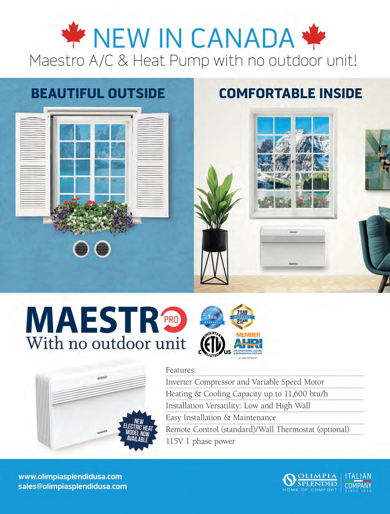 5 Olimpia Splendid will show its Maestro Pro Series through-thewall heat pump units offering comfort and operating cost savings due to its inverter drive compressor and variable speed motor, which also contribute to its quiet operation. They offer heating and cooling up to 11,600 Btu/h. With no outdoor unit, the systems are easy to install and maintain.
