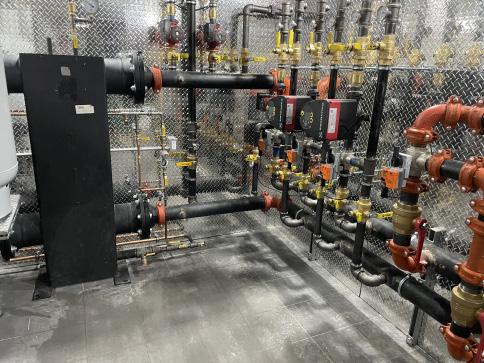 The mechanical room is tied into a centralized campus lowtemperature district energy system (LDES).