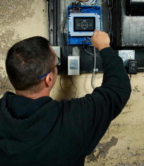 Brown Mechanical technician Chris Bibby installs the tekmar Steam Control 289 in the theatre’s mechanical room. It provides remote access to the theatre’s heating system.