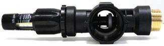 Figure 2 (top) Engineered polymer manifold with balancing valves with flow indicators as part of the manifold. (bottom) Single loop balancing valve with flow indicator.
