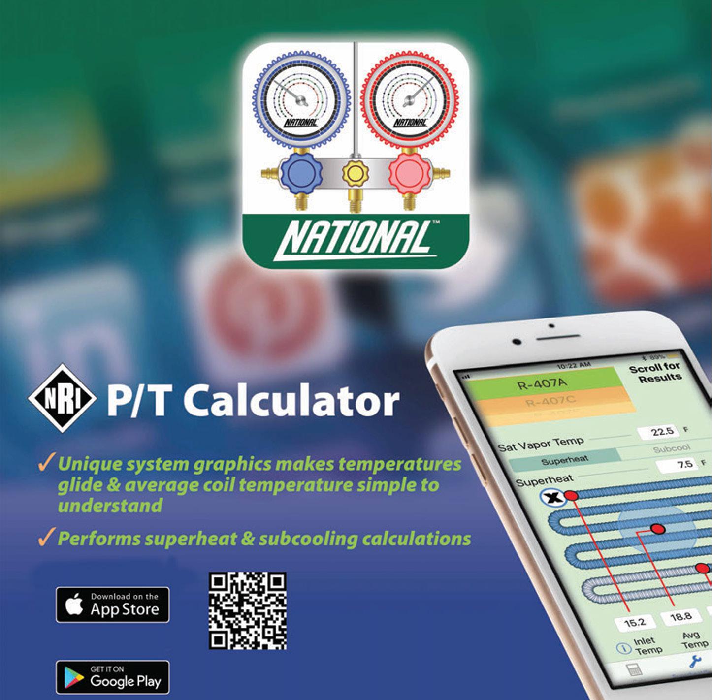 pressure temperature apps available (Figure 4 is one example). Given that we all have cell phones, downloading this app will eliminate the possibility of never having a PT chart available. In addition, it will calculate superheat and subcooling for you as well.