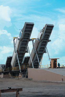 Pellets are unloaded from ship-holds using Vigan pneumatic ship unloaders, which are essentially gigantic vacuum cleaners that suck the pellets out of each ship-hold and deposit them onto conveyors that transport the pellets into the power plant.