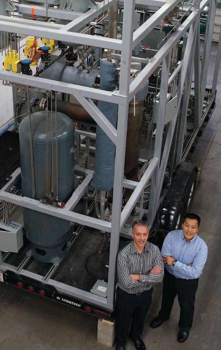 NAIT researchers in the School of Applied Sciences and Technology have partnered with Mack Trucks, Oberon Fuels and Westcan Bulk Transport to develop a technology that manages moisture for dimethyl ether (DME) – an alternative to diesel fuel made from either natural gas or biomethanol. The technology will remove any residual water from the fuel before it enters the engine, which would mitigate corrosion and low performance.