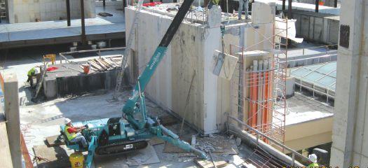“Shortage of space was what led us to go with an overhead crane solution,” Oliveira says. “I believe it is a solution that builders will have to use in the future. As cities get more crowded, the available space to stage the