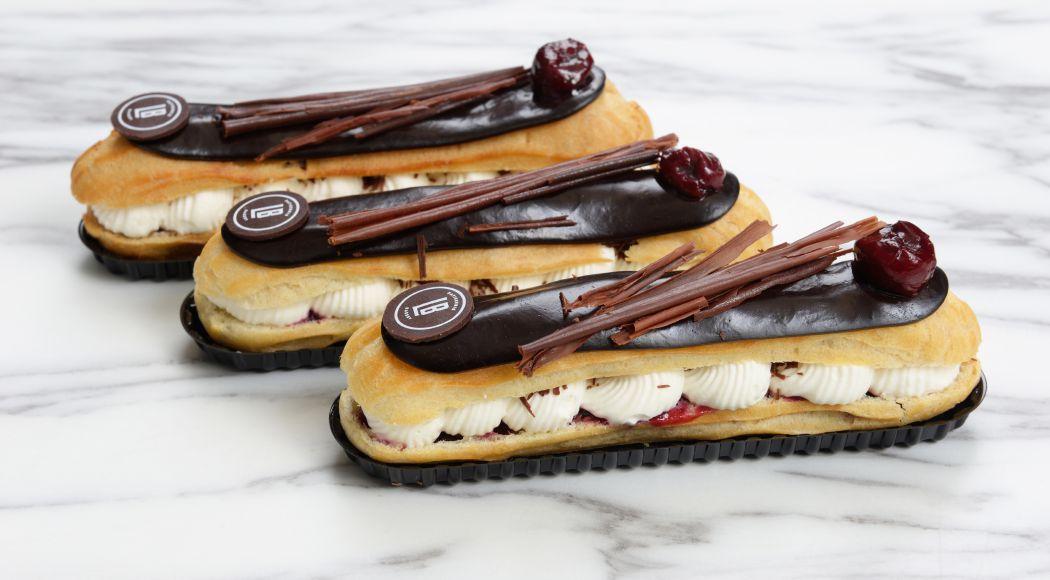 And then there are a whole variety of eclairs, “My favourite is the Black Forest,” she says. The choux pastry is filled with kirsch diplomat, with added cherry kirsch compote and topped with dark chocolate glaze and chocolate shavings.