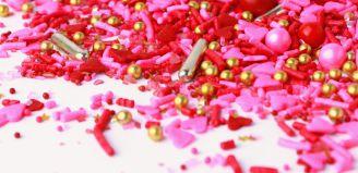 Four steps online steps lead the bakery through choosing a texture for the sprinkle type (non-pareils, pearls, jimmies, and sugar crystals) then colours with a combination of shapes and edible glitter options.