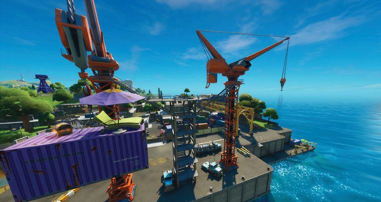 To see the cranes, which unfortunately show no obvious signs of which company manufactured them, players have a few choices where they can land. For small cranes, players can land in the northwest corner of the map near the lighthouse and find a crane lifting a speedboat high out of the water. Or, they can land at Dirty Docks, a location on the east side of the map, and come across two towering cranes players can scale and explore.