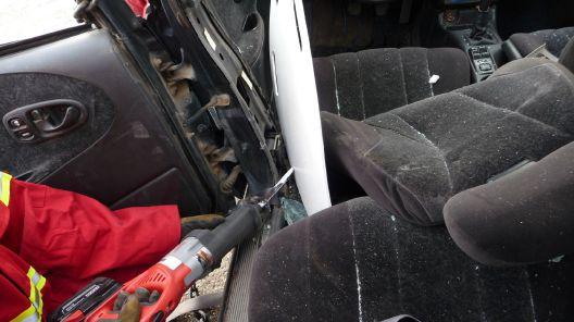 Photo 6: Additional force may have to be applied with the FRJ inserted into the driver’s door window area to continue to spread and create space as the B-pillar is being severed.
