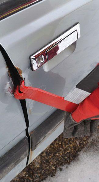 Photo 11: The bevelled edge of the tool can be used to expose the plastic trim that is hiding the supplemental restraint systems or to remove inside door panels if needed to disengage the lock mechanism.