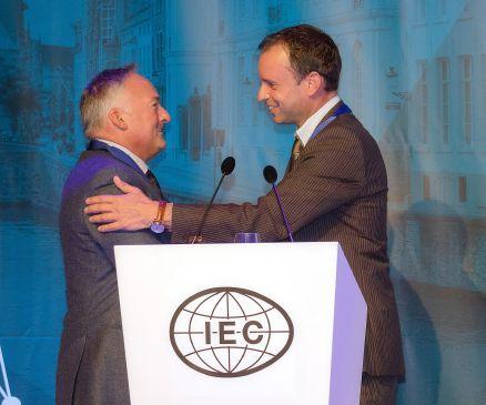 Tim Lambert (left) took on the role of IEC chairman in September 2017 at the IEC Conference in Bruges, Belgium.
