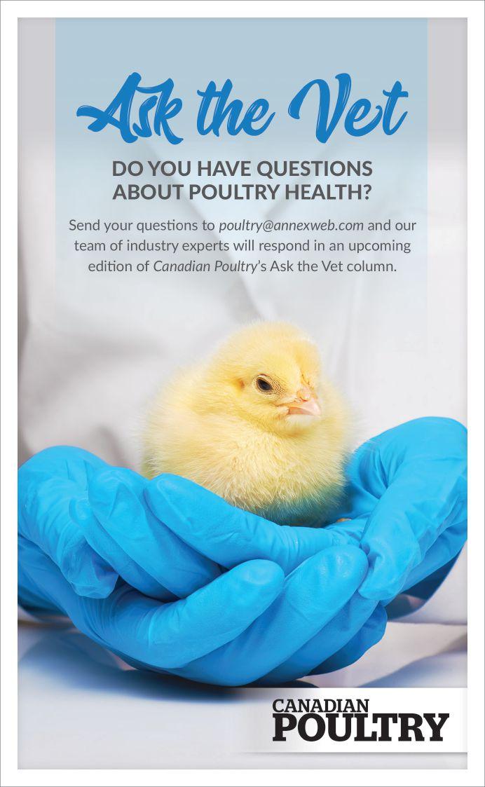 Send your questions to poultry@annexweb.com and our team of experts will be happy to answer them in an upcoming column. You can read the first Ask the Vet instalment on page 10, where Inglis helps you make sense of different anticoccidial classes.