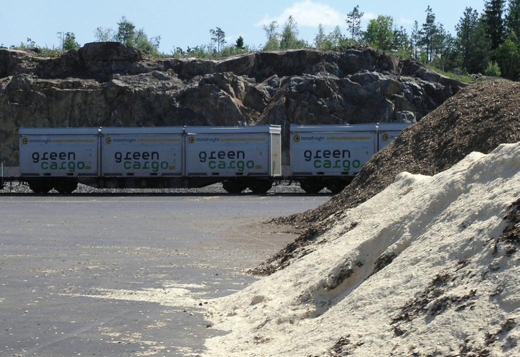 ships at once and receives about 200 shiploads/year. In addition, a fuel terminal was built at a nearby railway line located less than 50 kilometres from the plant. There, four trains/week each bring about 1,000 tonnes of biomass (equivalent to 30 truckloads) from forests in northern Sweden, meeting about half the plant’s fuel needs. Biomass is unloaded and stored at the terminal and later trucked to the plant.