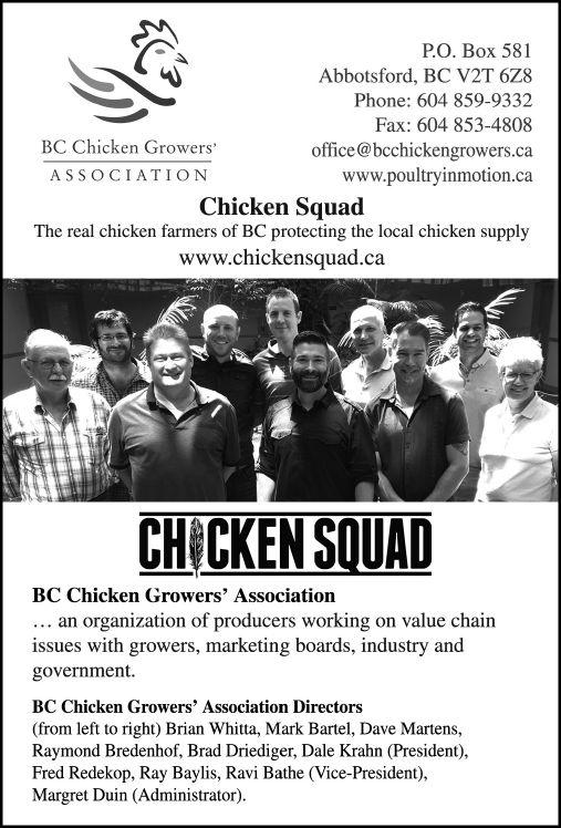 Derek Janzen, Vice Chair BC CHICKEN MARKETING BOARD - Derek Janzen is Vice Chair of the British Columbia Chicken Marketing Board, where he has been an elected director since 2012. Derek’s unique career path spans the entire broiler chicken supply chain. He grew up on a layer/broiler farm and after graduation worked his way up the ranks with the Pollon group (BC’s largest chicken processor) from hatchery to poultry sales. In 1998, he left his downtown Vancouver career to