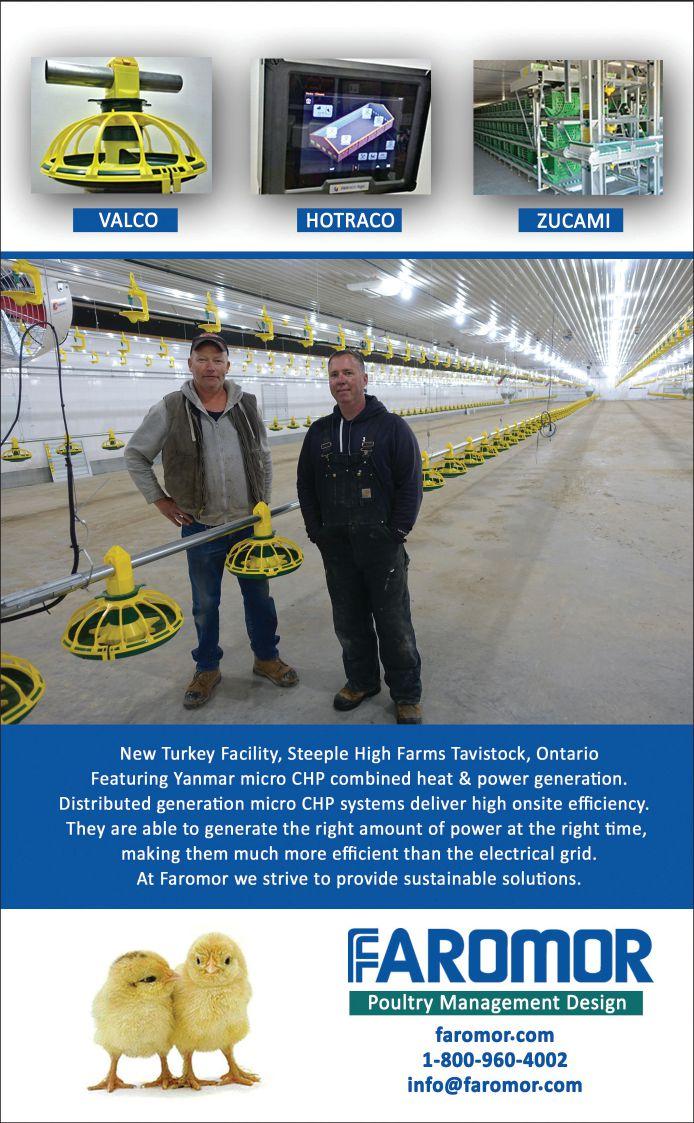 FAROMOR LTD. – Faromor is now offering a full line of poultry products for the broiler, cage layer, breeder, and turkey industries. Complete system packages are available for new buildings and upgrades to existing operations. Faromor also offers complete design engineering and installation on all projects. Ontario distributor for Hotraco Computer Control Systems, Zucami Poultry Cage Systems, VES Fans, and Valco Feeding & Drinker Systems.