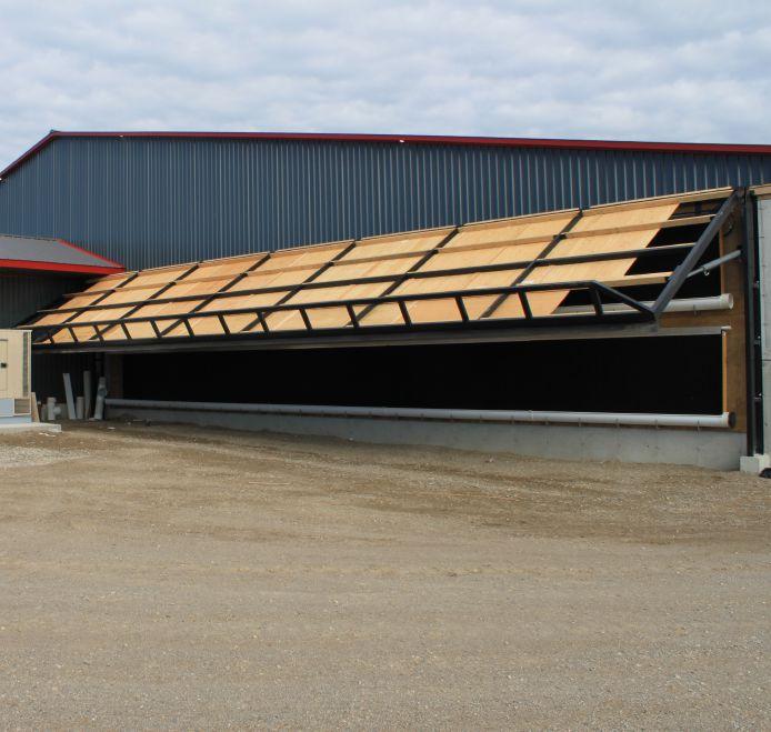 Valco Cool Cells with sufficient air speed from 72” fans will keep birds comfortable during extreme heat stress. Hydraulic covers are being installed for winter protection of the Cool Cells