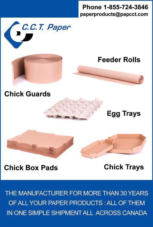 Luc St-Hilaire, CEO CCT INC. For more than 30 years, CCT developed and produced all paper products needed by the poultry industry across Canada. (chick box, waffled pads, feeder roll, chick guard, chick tray) All of our products should be customized for your own application and they are 100 % biodegradable. We ship as required and in a timely manner directly to your doorstep. Also CCT is a converter who manufactured rolls, embossed paper and chipboard for your commercial and industrial packaging. Outstanding products for unique customer like you. Call us at 1-855-724-3846.