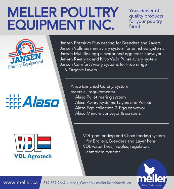 JANSEN POULTRY EQUIPMENT established in 1984 and present in Canada since 1989, manufacturers of mechanical nests for broiler breeders, commercial layers, layer breeders, egg conveyors and elevators. Hatching packers for any type of incubator are also available from JANSEN POULTRY EQUIPMENT. Slatted floor housing, cage-free rearing systems, aviaries for commercial layers and manure dryers are also manufactured by JANSEN POULTRY EQUIPMENT. For more information: call (646) 931 1987 or mail: canada@jpe.org