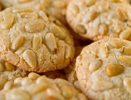 adhere to the dough and remove, very gently shaking the parchment to loosen any extra pine nuts. Repeat with remaining piped cookies. Or, instead of dipping the piped cookies you can sprinkle the pine nuts over the piped cookie dough and press them into the dough to adhere.