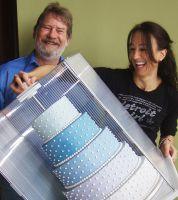 The inventor, Scott Chapin (left) holding his award winning invention with employee, Michelle Bommarito.
