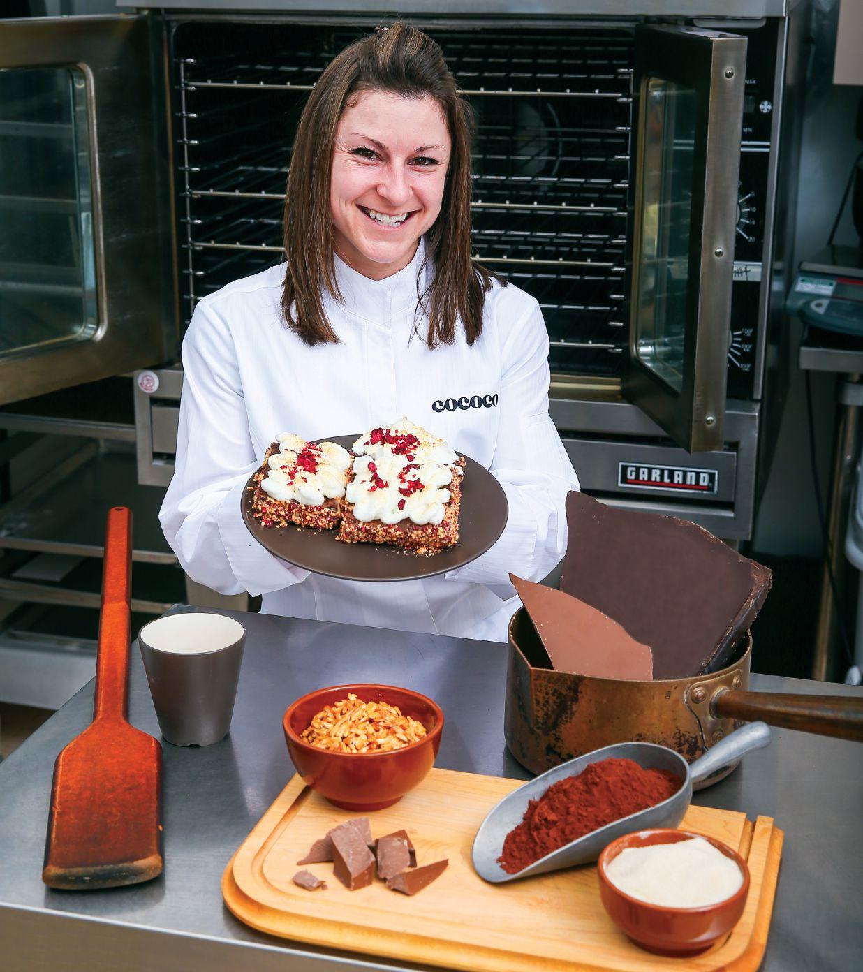 in Texas to do so, but luckily for Cococo that didn’t work out and she ended up rolling into Calgary. In the true spirit of independence, she said the mountains were calling and she wanted to be far enough away that she wouldn’t be able to come home too easily. A girlfriend helped her out for a few months until she found work and got hired as a baker/pastry chef at Cococo in 2009. Larivière works alongside co-workers making things like macarons, verrines and hot chocolate for Cococo’s retail café settings.