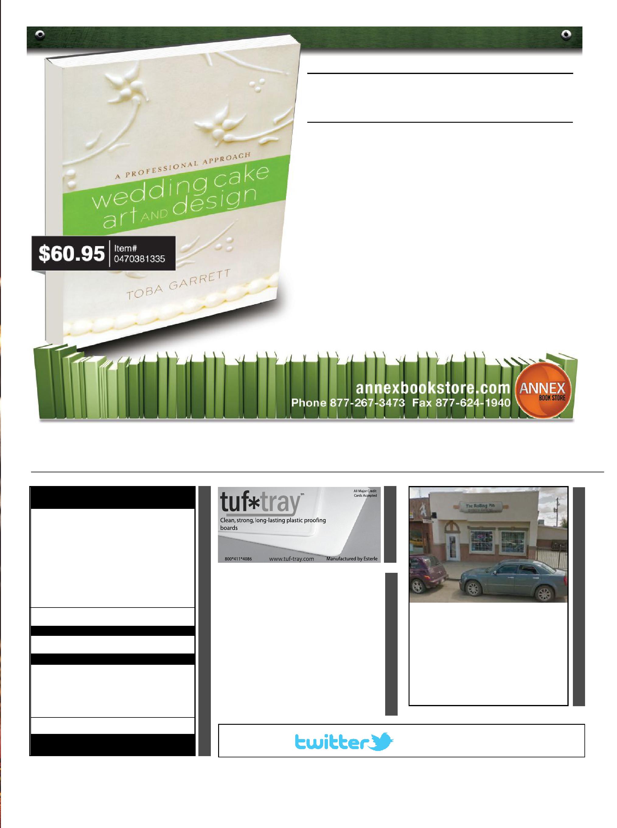 occasionally, bakers Journal will mail information on behalf of industry-related groups whose products and services we believe may be of interest to you. If you prefer not to receive this information, please contact our circulation department in any of the four ways listed above. opinions expressed in this magazine are not necessarily those of the editor or the publisher. no liability is assumed for errors or omissions. all advertising is subject to the publisher’s approval. Such approval does not imply any endorsement of the products or services advertised. publisher reserves the right to refuse advertising that does not meet the standards of the publication.