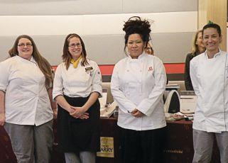 Kelsey Lamers of Canadore College, Amber Robinson of Humber College, Jessica Cat of Fanshawe College and Elisa Luz Pinto of Le Cordon Bleu competed in the Canadian Intercollegiate Chocolate Competition.
