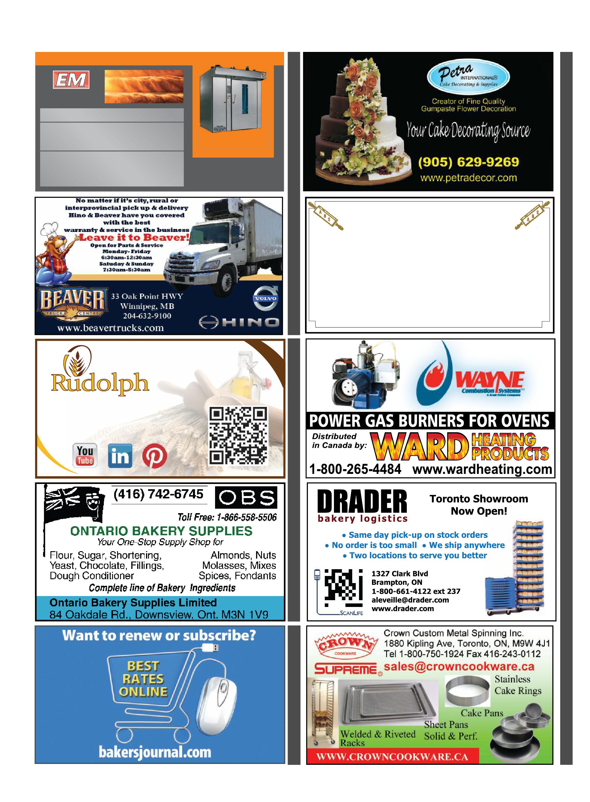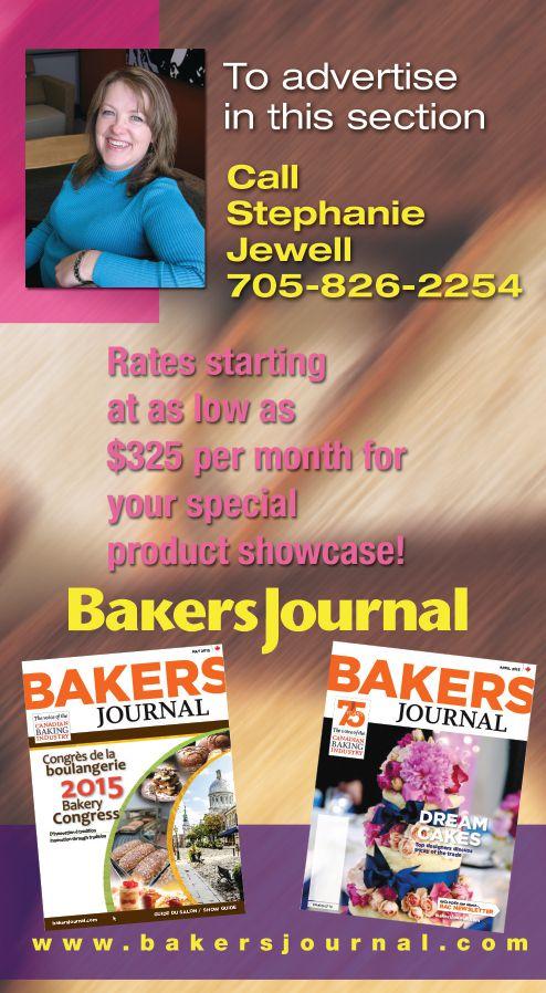 Occasionally, Bakers Journal will mail information on behalf of industry-related groups whose products and services we believe may be of interest to you. If you prefer not to receive this information, please contact our circulation department in any of the four ways listed above. Opinions expressed in this magazine are not necessarily those of the editor or the publisher. No liability is assumed for errors or omissions. All advertising is subject to the publisher’s approval. Such approval does not imply any endorsement of the products or services advertised. Publisher reserves the right to refuse advertising that does not meet the standards of the publication.