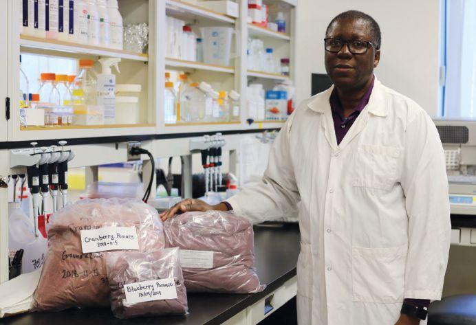 “We knew cranberry can be used to prevent urinary tract infections caused by E. coli and that cranberries have other health benefits like antioxidants,” Diarra explains. “We quickly realized that it would be difficult to develop juice in animal production, but we discovered that there are a lot of beneficial compounds in the pomace, so we could use that instead of juice.”