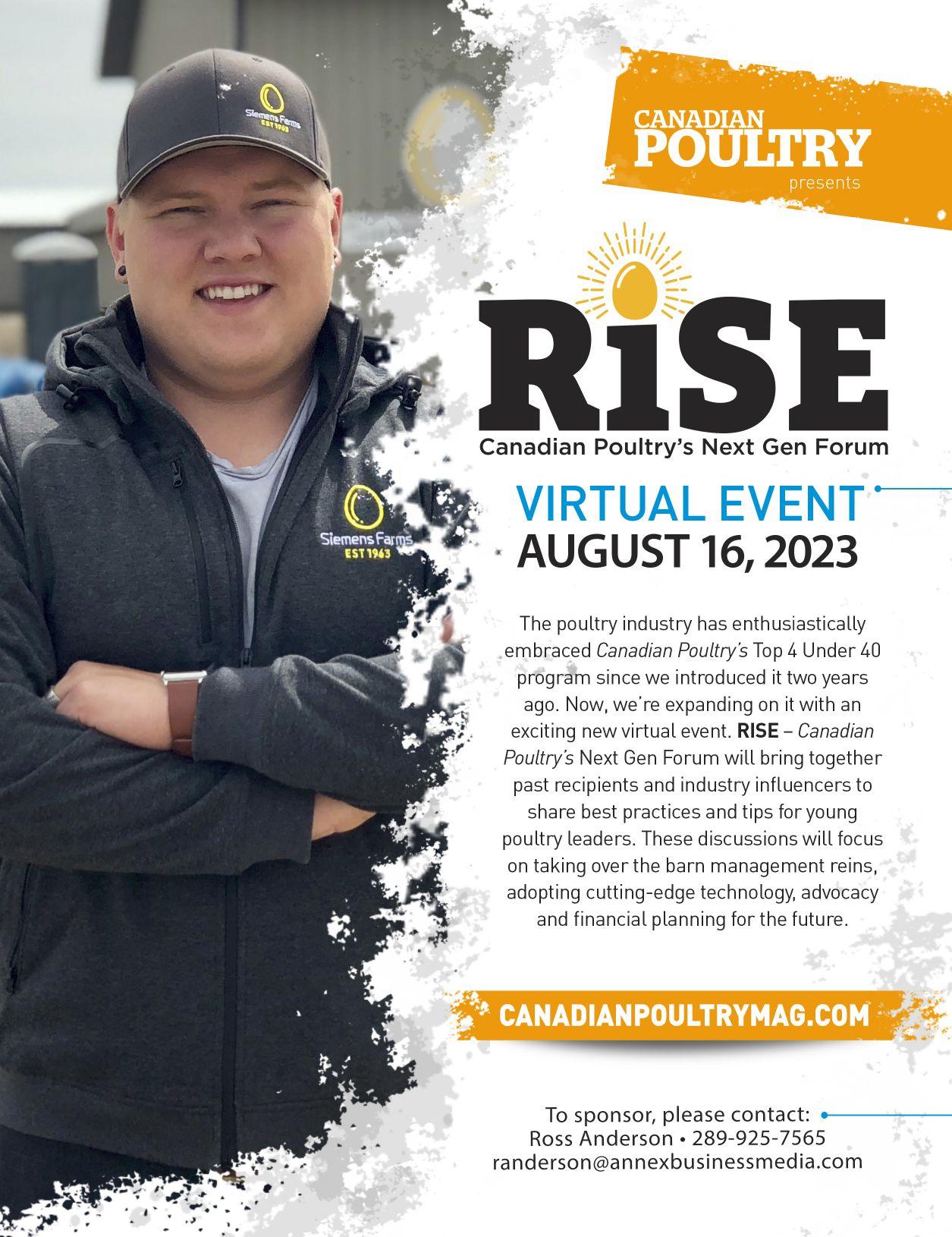 In other recognition news, Canadian Poultry’s 4 Under 40 program is back! While we’ve yet to close nominations at the time of writing this column, based on the response I’ve seen thus far it has continued to grow in its third year.