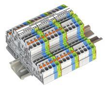 WAGO has introduced a doubledeck push-button terminal block with 15-degree vertical conductor entry, called the TOPJOB S 2202 series. The dual row jumper slots feature the company’s exclusive jumper retention spring to make wiring tasks simpler. It also includes terminals for through, internally commoned and ground connection. The TOPJOB S 2202 series has all the features of the original TOPJOB S series including built-in test points, endless