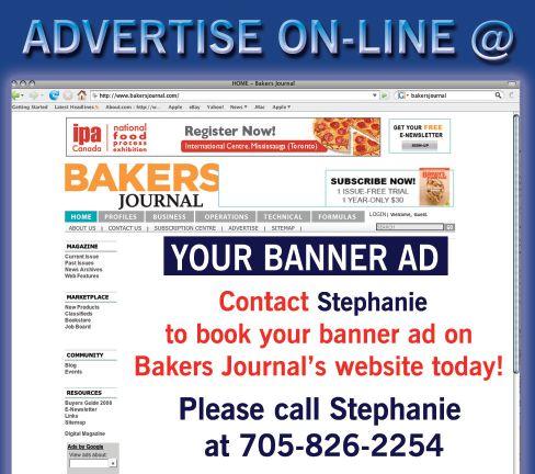 Send your subscription request to: bakers Journal p o box 530, simcoe, on n3Y 4n5 tel: 1-866-790-6070 ext. 206 Fax: 1-877-624-1940 E-mail: subscribe@bakersjournal.com