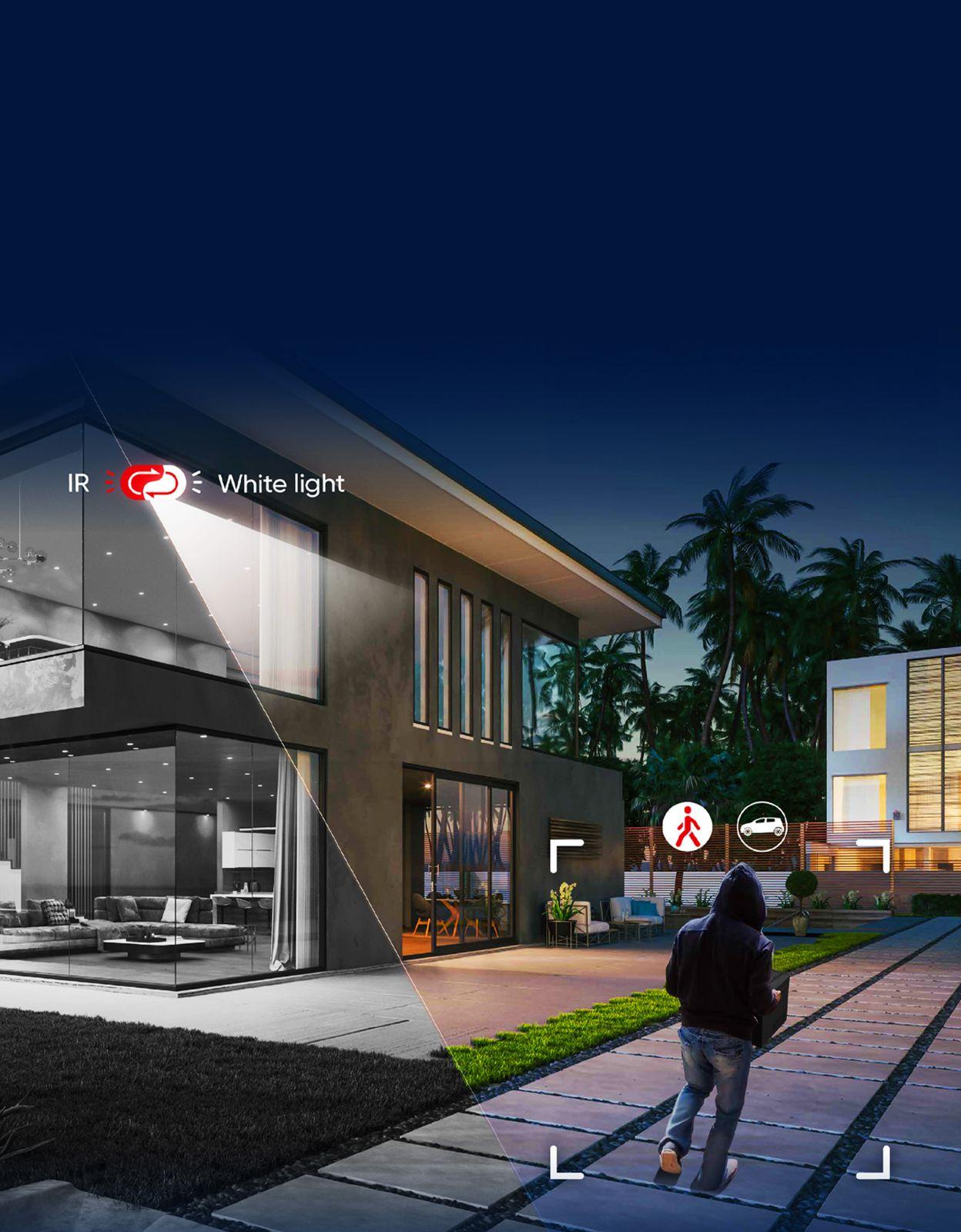 • In smart mode, visible supplemental lighting gets triggered by persons or vehicles