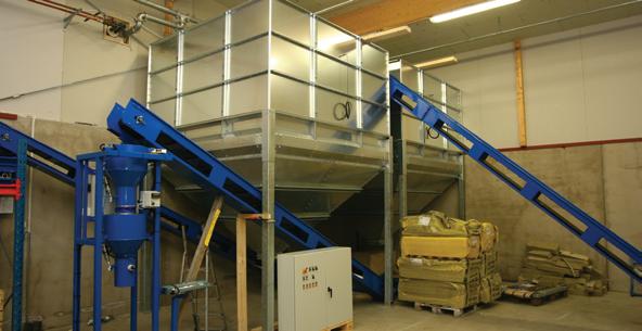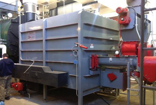 100 ppm of CO. Messersmith also provides particulate removal equipment and stacks to meet air quality regulations. Most users fire green fuel up to 45% moisture content to produce the cheapest unit of heat output. Travelling auger fuel-handling systems prevent bridging and use little electrical power. Automatic chip sorting removes over-length pieces before they encounter an enclosed auger, reducing the chances of jamming.