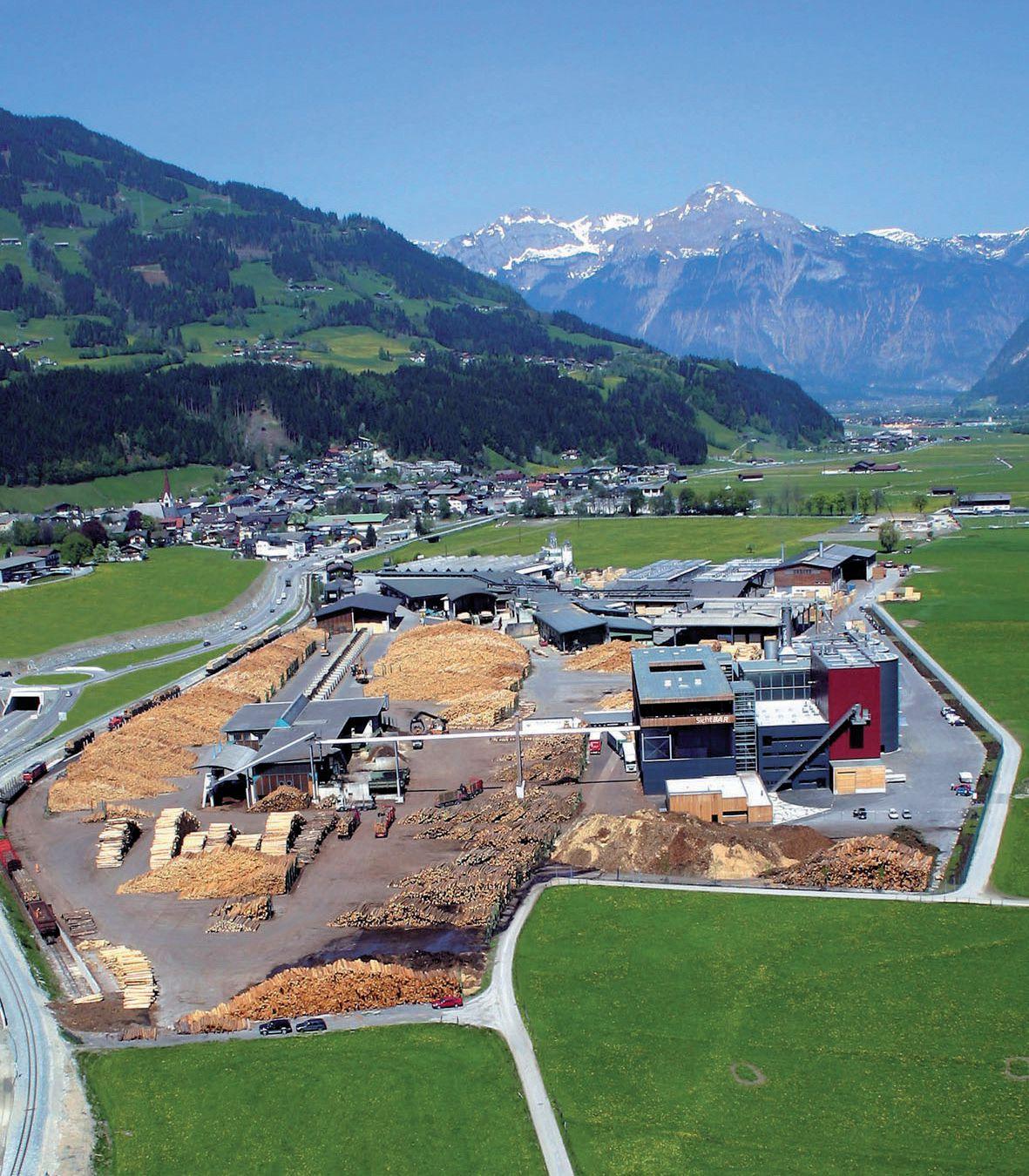Binderholz’ Fuegen operation produces a range of forest products and pellets, all against an idyllic ski country setting.