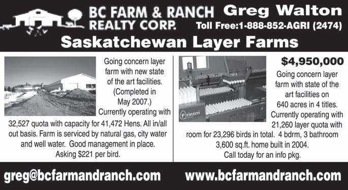 NIAGARA AREA: 45,000 sq. ft. of barns, small acreage, 3+2 bdrm home, natural gas heat. Nipple drinkers, pan feeders, radiant tube heaters. 14,000 Quota available at market price. Indoor pool and paved road location. Call Jack.