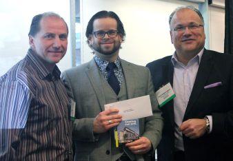 Paul Hetherington, president and CEO of the Baking Association of Canada (right) and Dan Peroff, chair of the Ontario Chapter, presented Joe Baker, dean of Centennial’s School of Hospitality, Tourism and Culinary Arts, with a $100,000 endowment to fund scholarships in commercial baking.