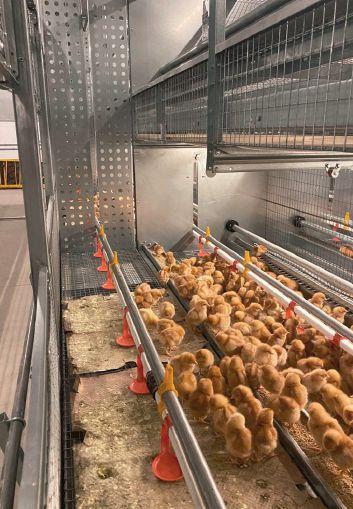 The system includes a balcony that can be raised as pullets age to train them on how to jump.